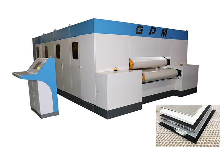 • 特氟龍雙皮帶復合機組用于生產(chǎn)熱塑性蜂窩三明治板和各類熱塑性復合材料層壓板
